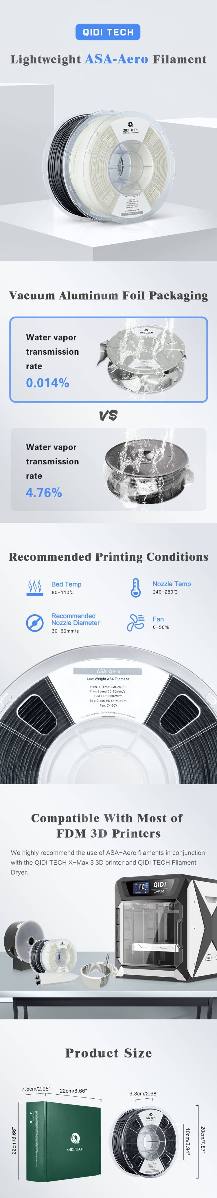 QIDI ASA-Aero ist ein ASA-Filament, das während des Druckvorgangs mithilfe eines Treibmittels zu schäumen beginnt. Das Treibmittel befindet sich vor dem Drucken im ASA-Filament in einem unangeregten Zustand. Während des Druckvorgangs lässt sich die Schaumbildung des Treibmittels durch Anpassung der Drucktemperatur leicht steuern. Die maximale Schaumbildung kann bis zu 250 % betragen. - In der Zwischenzeit,